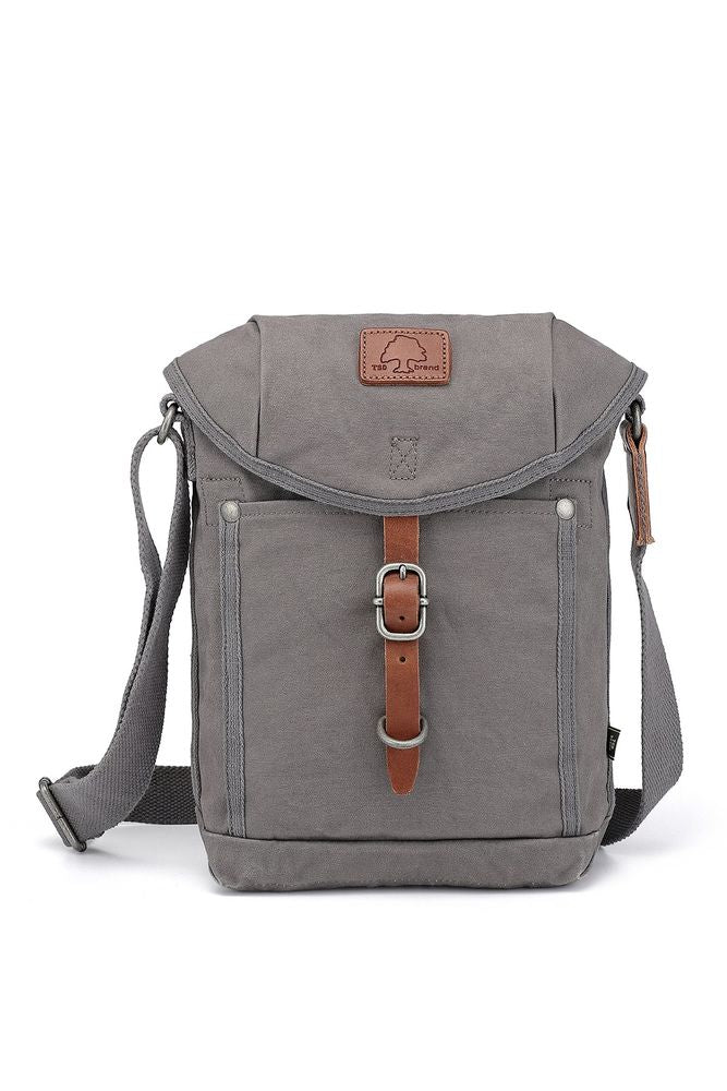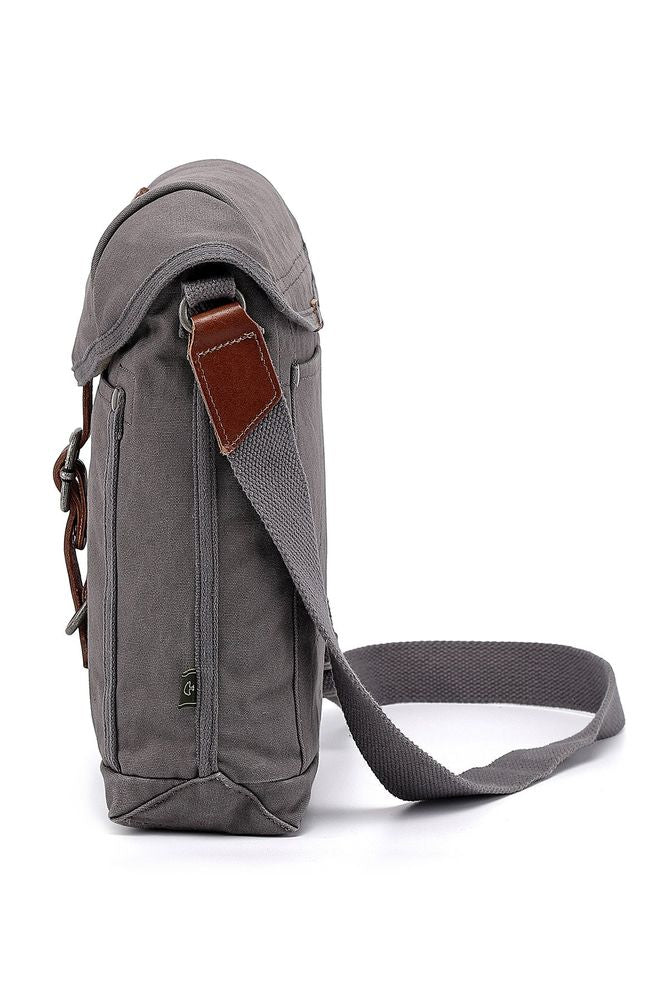 Military-Inspired Leather Forest Crossbody Bag with Flap