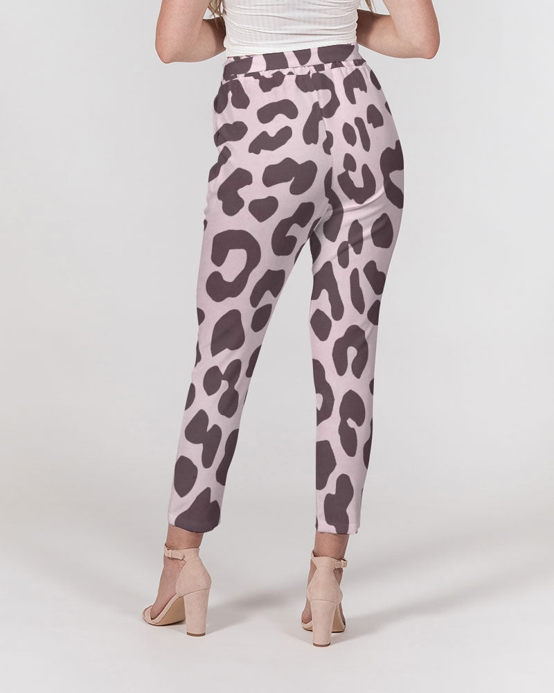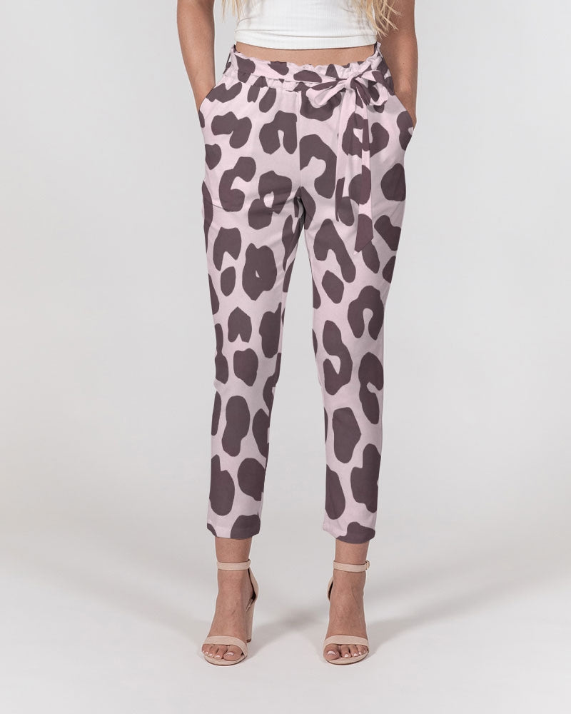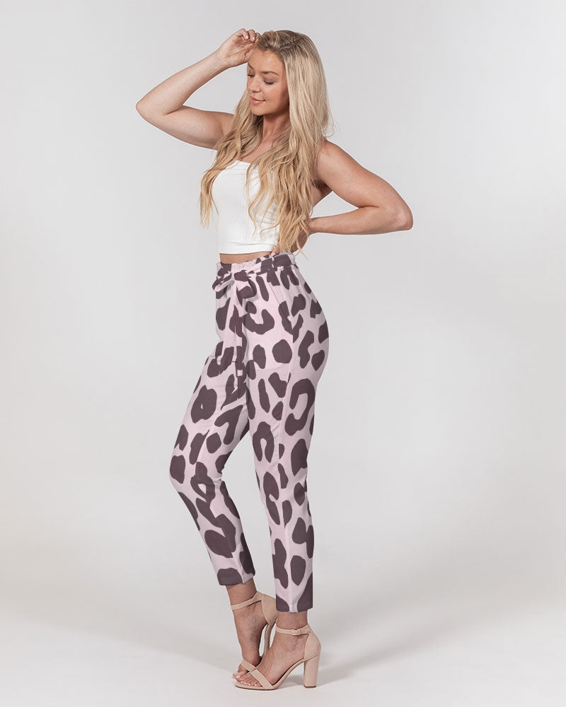 Pink Leopard Print Women's Belted Tapered Pants