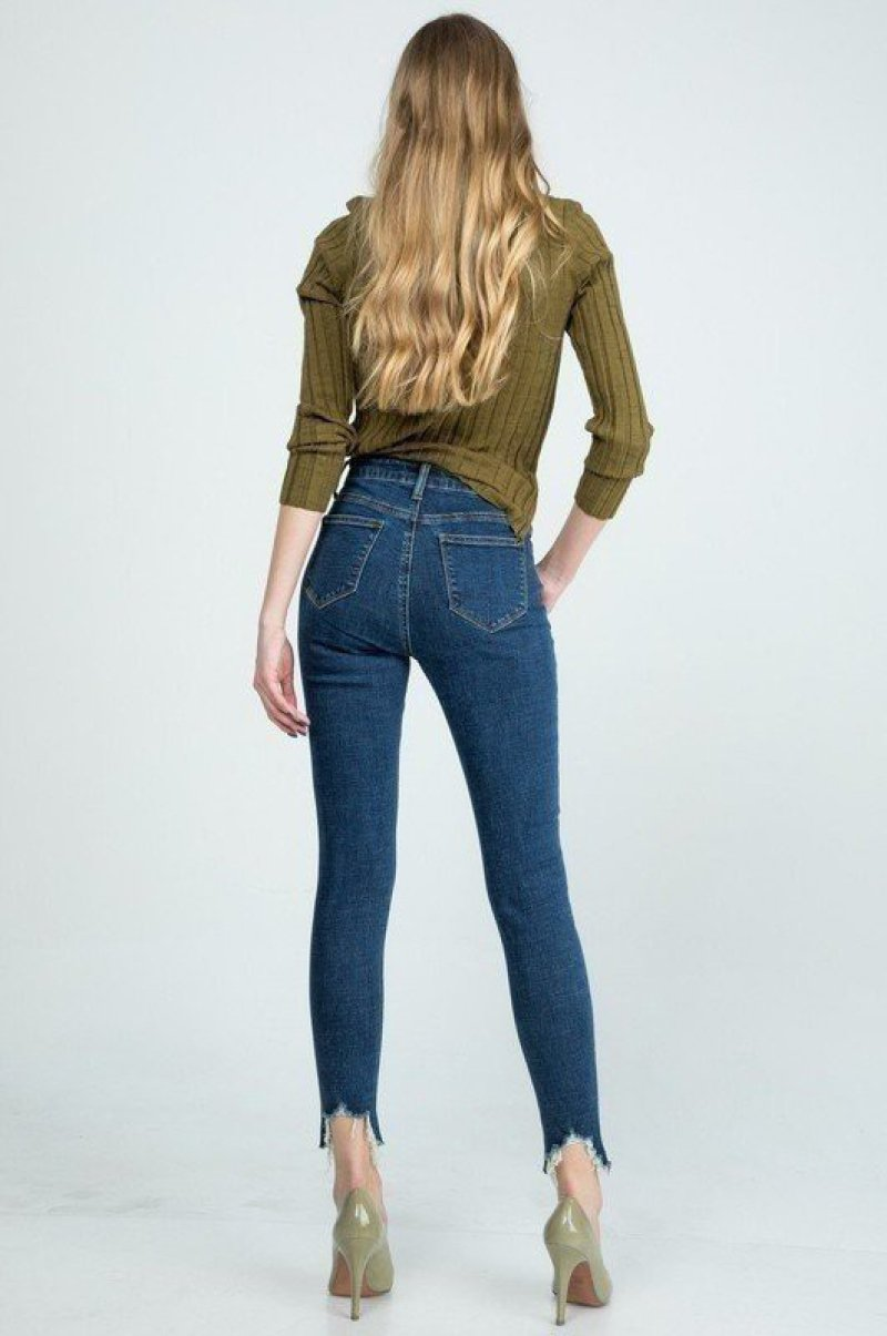 Distressed Bottom Hem Skinny Jeans