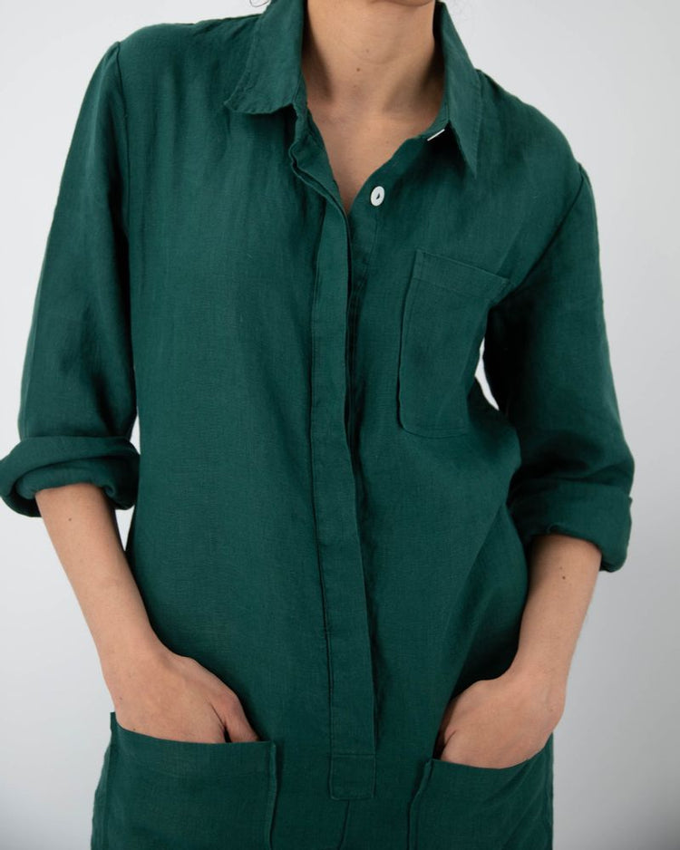 - Das perfekte Loungewear-Übergangsstück, wenn Sie in Sekundenschnelle einen All-in-One-Look benötigen. Perfekt für die Arbeit von zu Hause, bequem genug zum Spielen und alles dazwischen. Entworfen mit langen, aufrollbaren Ärmeln und fünf (ja, fünf!) großen Taschen für Schlüssel, Spielzeug, Getränke, Handy, Werkzeuge, was auch immer. Hergestellt aus 100 % Leinen, so leicht und vielseitig.