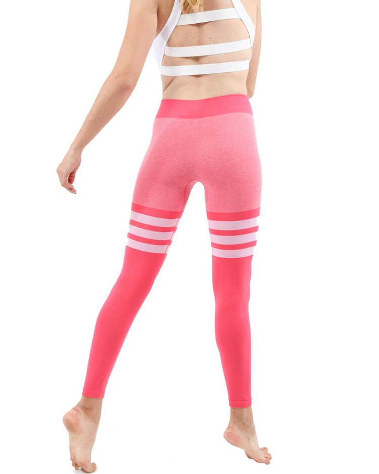 But these leggings aren't just functional – they're fashionable, too. The triple-printed band at the thigh adds a pop of colour and style, making them a stylish addition to your activewear collection. And with their versatile design, you can wear them during your workouts or just a casual day about town.