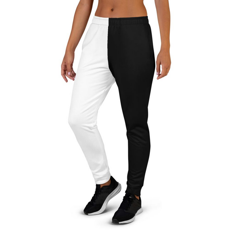 Womens Jogger Pants - Black & White Two-Tone Graphic Sports Pants
