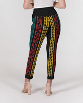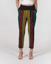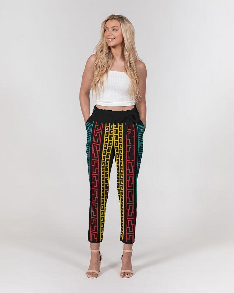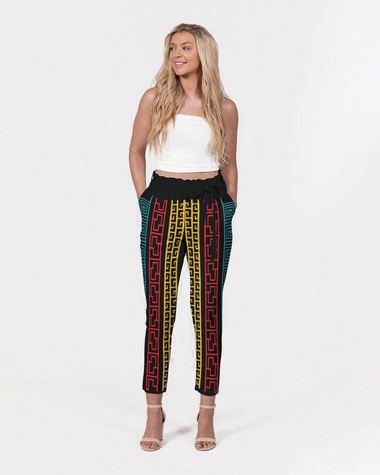 Women's Pants, Tapered Cut Trousers - Belted / Black / Multicolor