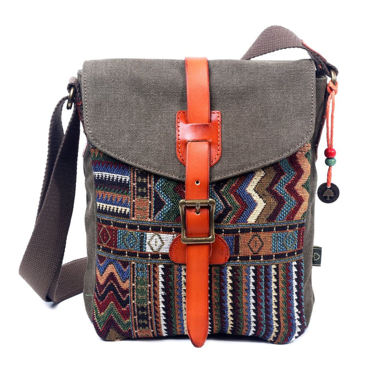 Introducing the Four Seasons Crossbody Bag - the perfect travel companion for the modern, adventurous spirit. This eye-catching bag is designed with both style and functionality in mind, making it ideal for everyday use and getaways alike. Crafted from durable 100% cotton canvas, this unique crossbody bag is adorned with a vibrant bohemian pattern that adds a touch of playful flair to any outfit. The bright orange 100% genuine leather accents punctuate the design, adding to its free-spirited charm.