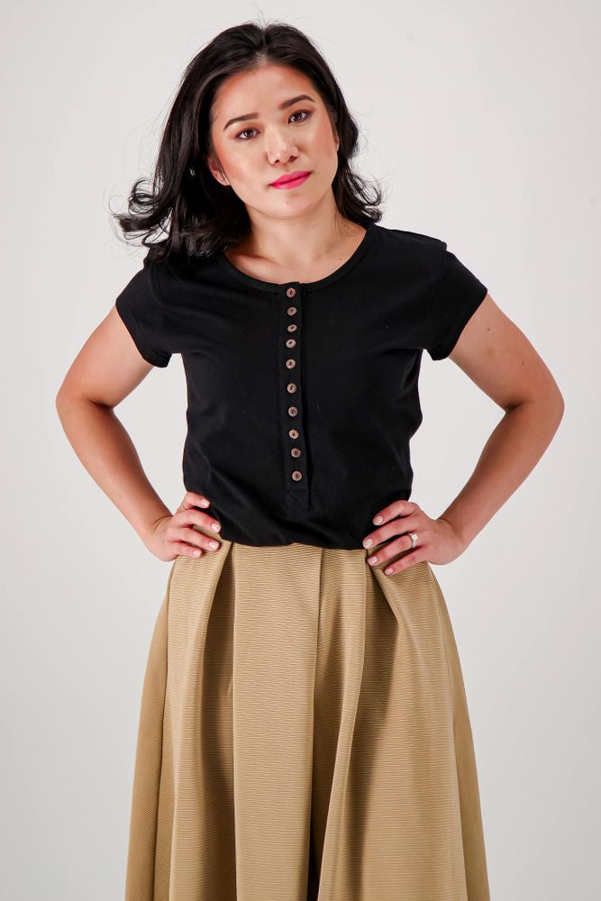 The Relaxed ¾ Sleeve V-neck T-shirt