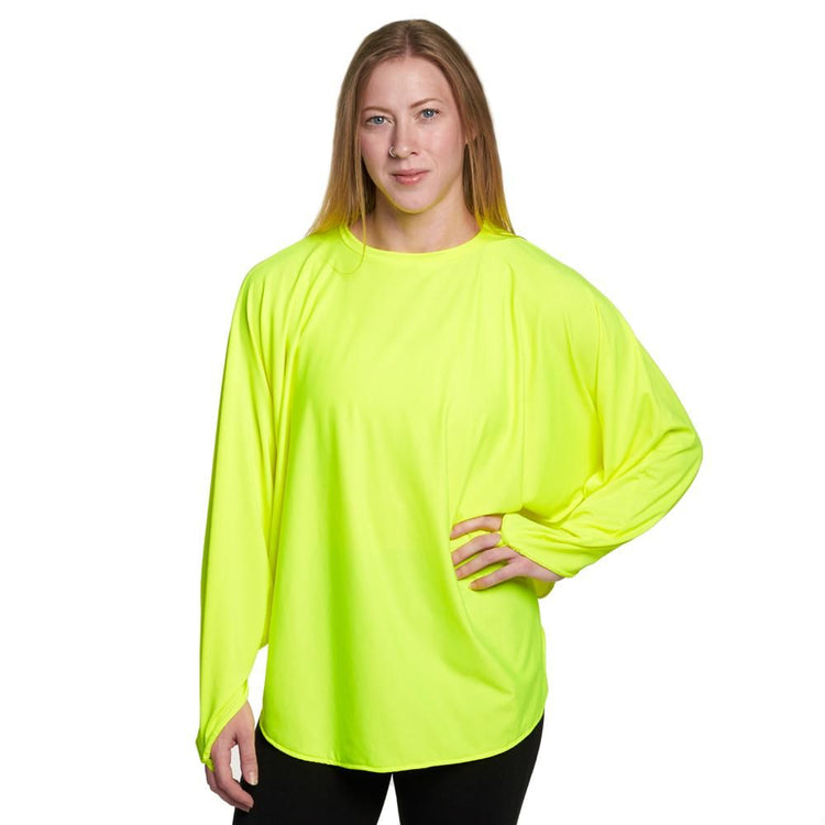 Our Solstice is a tunic-style top with side vents to keep you cool, and stay-put stitches in the vents so the top keeps its shape.