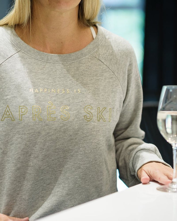 Women's Apres Crew Sweatshirt, Heather Grey with Gold