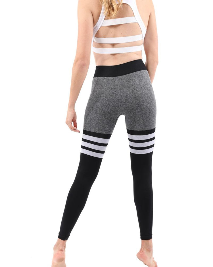 Looking for the perfect leggings to take your workout game to the next level? Look no further than the Cassidy Legging in Black from Savoy Active. These ultra-luxurious high-waisted leggings feature a triple printed band at the thigh and a smooth waistband for maximum comfort.